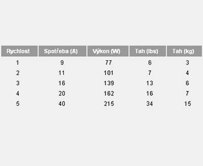 Rhino VX je vyjímečný v extra-nízké spotřebě elektrické energie a v ohromujícím výkonu, který je u 12V elektromotorů vyjímečný. Motor se ovládá teleskopickou rukojetí, která otočením nabízí 5 rychlostí + 2 zpětné. Lze nastavit úhel a hloubku ponoru, jednoduchým stiskem tlačítka motor vyklopíte z vody. Rhino VX je vyjímečně jednoduchý, klidný, tichý a bezpečný. Elektrické lodní motory vytvářejí na vrtuli rozdílný tah, který se udává v librách (1lbs odpovídá 0,48kg). Označení motorů Rhino VX obsahují v sobě číselnou hodnotu, která udává tah právě v librách, například Rhino VX 44 má tah na vrtuli 44 lbs. Předpokladem maximálního využití tohoto tahu, a tím docílení i největší rychlosti, je ideální umístění a nastavení motoru na vašem člunu. To znamená, aby se vrtule nedostávala nad hladinu a pokud možno osa otáčení vrtule byla rovnoběžná s pohybem lodi. Kromě výkonu elektrického motoru je dalším velmi důležitým faktorem jeho spotřeba. Na pohon nám v tomto případě stačí jedna 12V baterie. Motor Rhino je velmi ekonomický a jeho spotřeba je zobrazena v tabulce, je uváděna v Ampérech (A). Všimněte si prosím, že je zde spotřeba uvedena pro každou rychlost zvlášť. Kapacita baterie se udává v Amperhodinách (Ah) a ke zjištění její výdrže se kapacita vydělí odpovídající spotřebou udanou v tabulce u daného motoru s Vámi zvolenou rychlostí. Např: máte baterii s kapacitou 105Ah a motor Rhino VX 34 kde spotřeba u 2. rychlostního stupně je 11A. Výpočet: 105Ah / 11A = 9,5 hodiny. To znamená, že baterie (za předpokladu, že je plně nabitá) vydrží 9 hodin a 30 minut nepřetržitého provozu s motorem Rhino VX 34 na 2. rychlostní stupeň. | ||